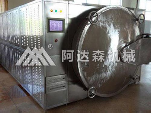 微波干燥設備具有微波殺菌、保鮮的作用,它是采用微波熱效應共同作用結果。微波的熱效應主要起快速升溫殺菌作用;而非熱效應則使微生物體蛋白質和 生亙活性物質變異,從而喪失活力或死亡。因此微波殺菌設備溫度低于常規方法,一般情況下,常規方法殺菌溫度要求在100攝氏度以上,時間十幾分鐘至幾十分鐘,而微波殺菌設備溫度僅85攝氏度,時間為幾分鐘,幾乎能滿足各種物料的殺菌需要。